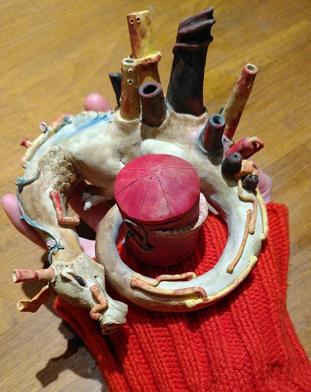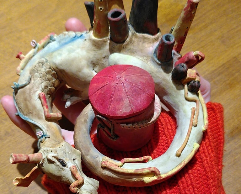 Alongside my Theatre Design work, I also create my own 3D art in mixed media, focussing predominantly on wet felting, ceramics and junk modelling, with an aim to explore concepts from earth sciences and physics combined with fantastical motifs and twists on common fantasy tropes.